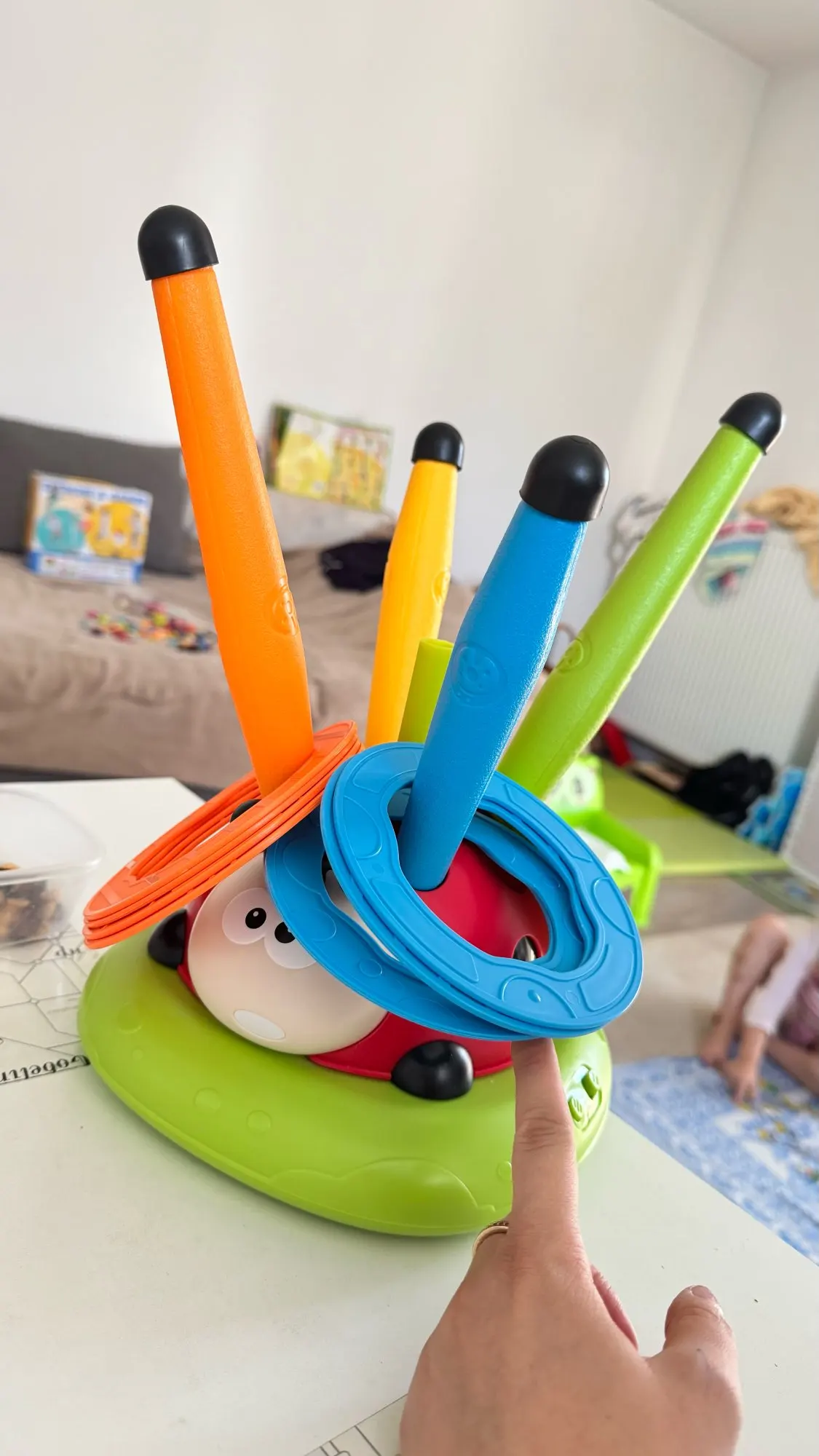 This tossing ring game is when the ladybird was in pipe, set the speed and the ladybug keep coming around and around, start tossing the rings by the music. Then, rearrange the poles into goals, set the spinning speed again, and then toss the rings to see how many points you can score. Very interesting toys for boys 5-7, girl toys age 6-7 years old, toys for 7 year old boys, gifts for 4 year old boys, gifts for 3 year old boys.